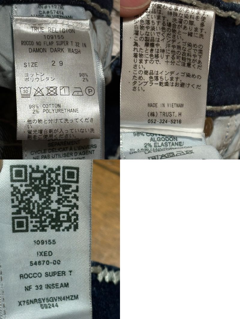 Product name: ※TRUE RELIGION トゥルーレリジョン ROCCO SUPERT Relaxed Skinny ストレッチ デニムパンツ 濃いインディゴ 29   BJBE.A