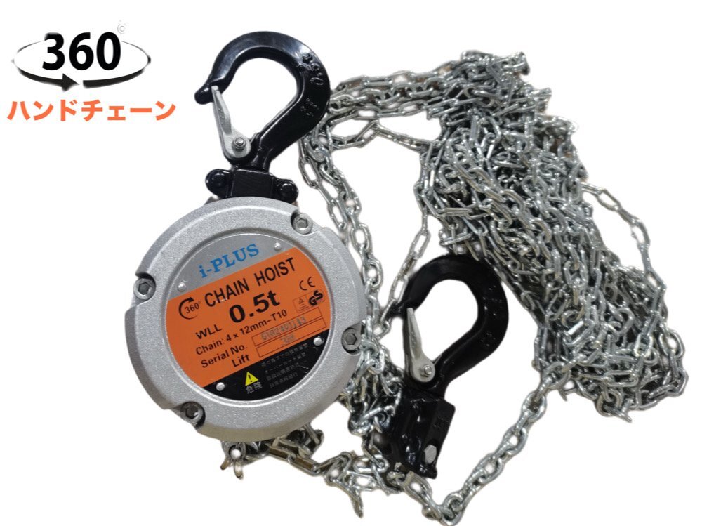 ●360度対応で確保できる安全性  あらゆる角度から持ち上げて配置可能! 引っ張るハンドチェーンは360度回転させることができ、横引き 斜め引きにも対応。狭い場所や高所での作業にも便利です。