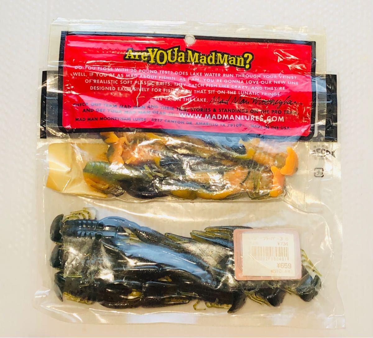 Product name: クローフィッシュチューブ ( MADMAN バス釣り ワーム )入数:11本 ※パッケージは別のものに入れています。