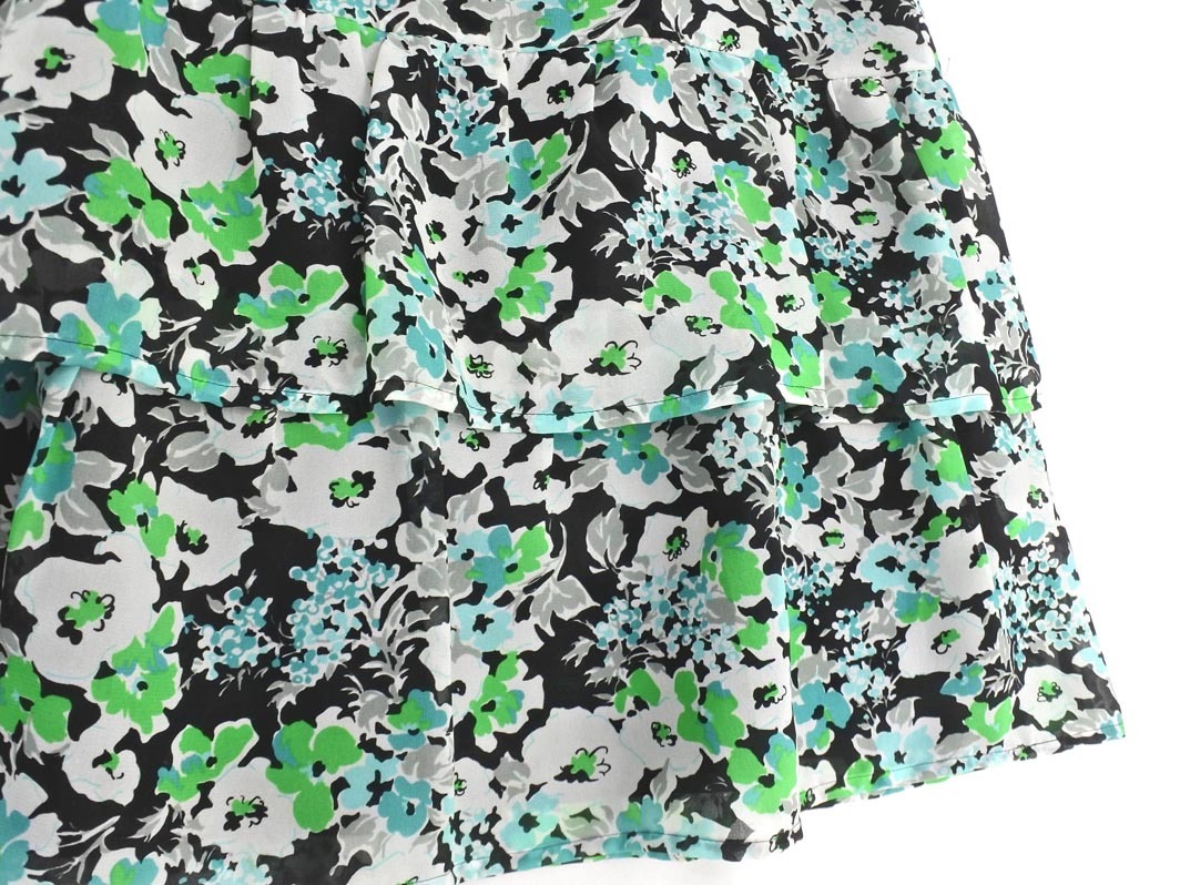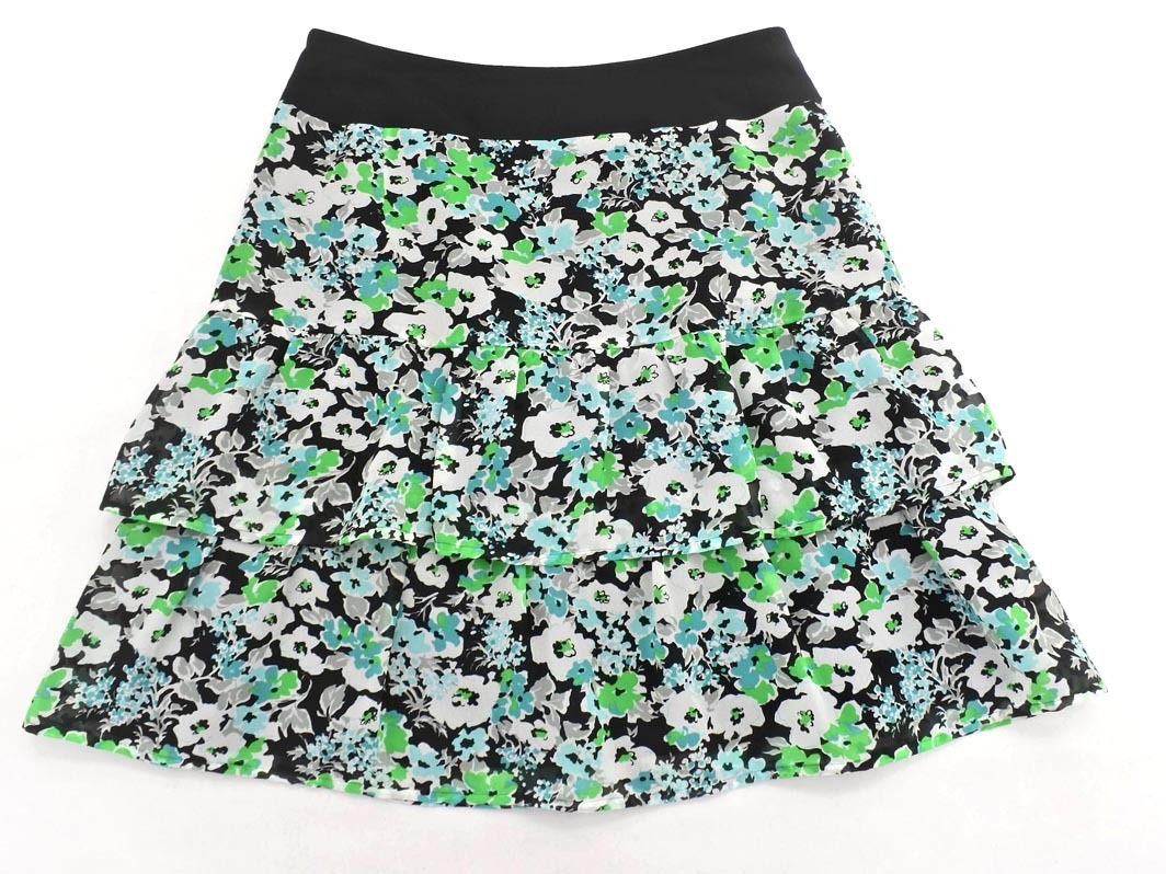 Product name: KUMIKYOKU 組曲 シフォン 花柄 ティアード スカート size2/黒x緑 ■◇ ☆ fba6 レディース