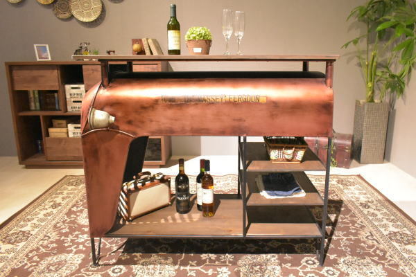 無骨でUSED感溢れるカーフロント型バーテーブル。