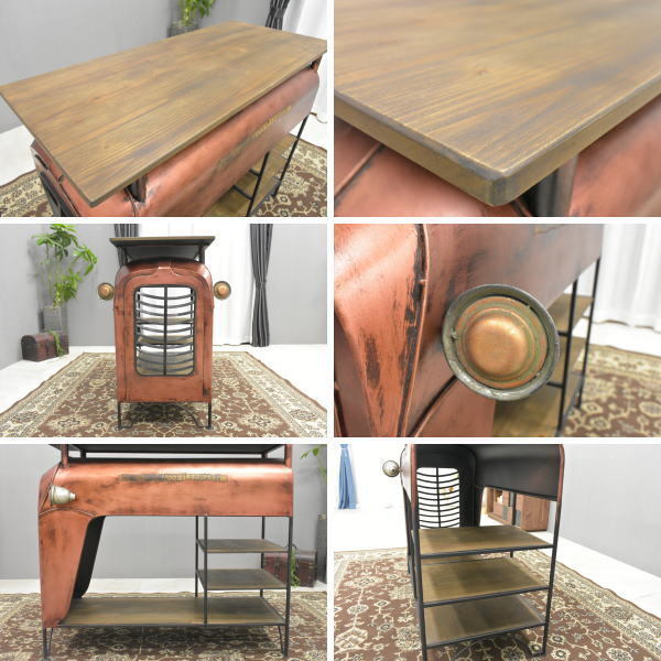 新品 カーフロント型インダストリアル110cm幅バーテーブル ヴィンテージ風カウンター家具テーブル車型ラックおしゃれ:ST32-6X-ZW-KC