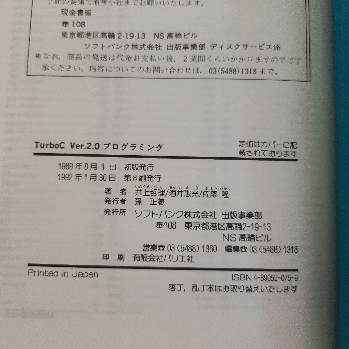L06-106 ver.2.0 Turbo C プログラミング 井上哲理 佐藤 隆 酒井恵光 SOFT BANK 天地小口に汚れ有 歪み有