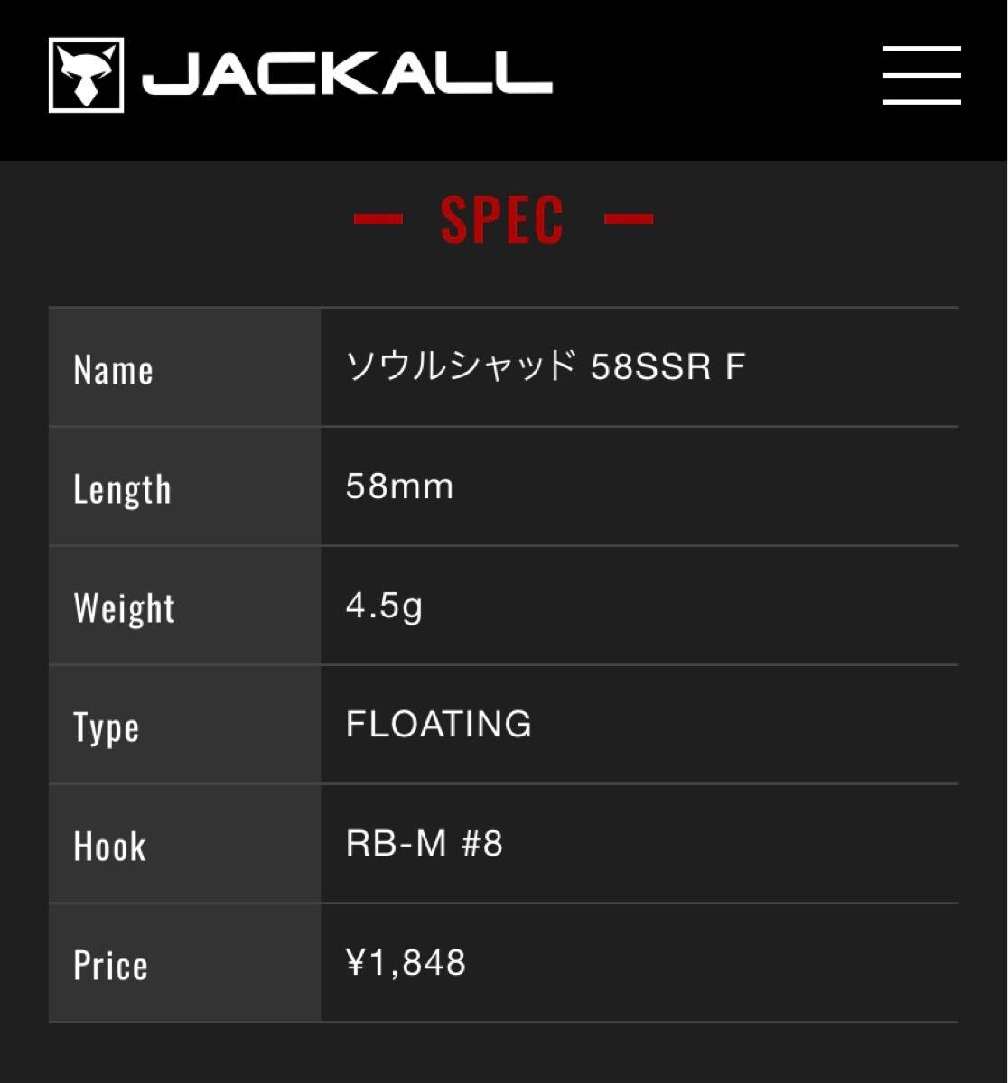 Product name: ジャッカル ソウルシャッド 58SSR 4個セット ☆新品未使用☆