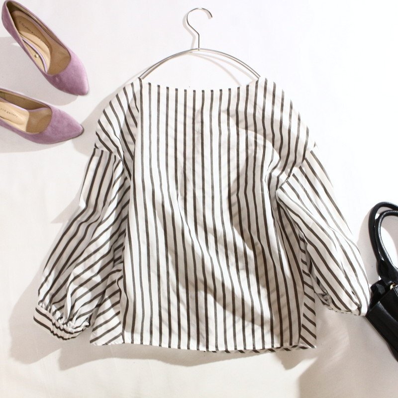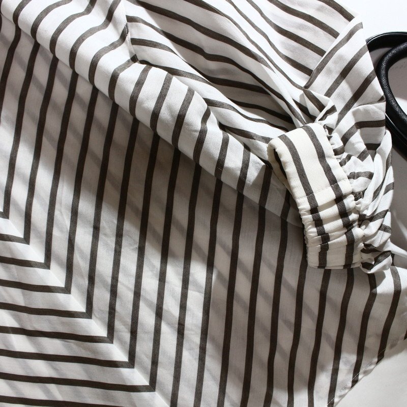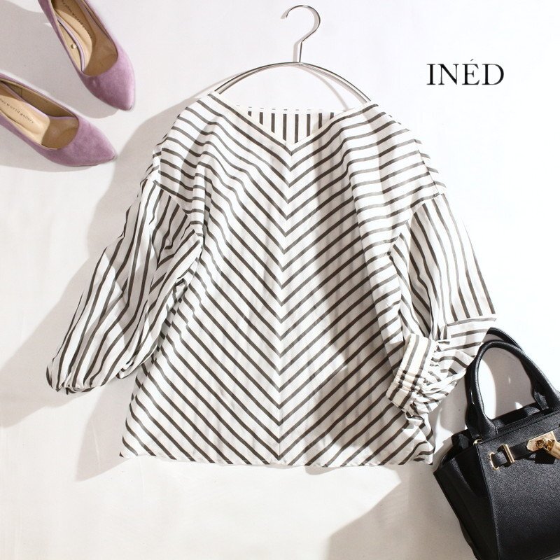 イネド INED 株) フランドル 春 夏 透け オーガンジー 斜め ボーダー柄 ポリエステル シャツ プルオーバー カットソー ゆったり 7号 白