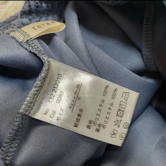 terawearemu しまむら フレアパンツ イージーパンツ カジュアル 総柄 大きいサイズ 水色 ブルー 青 LL