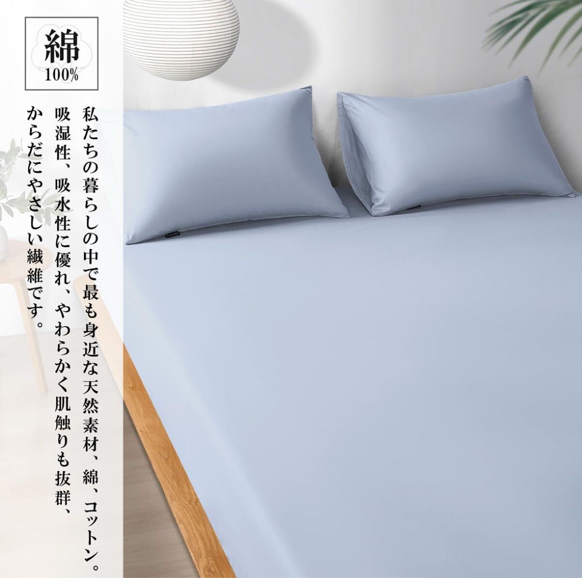 【商品情報】素材:綿100%天然オーガニックコットン、仕様:ボックス(全周にズレ防止ゴム付き)、厚さ25㎝までのマットレス/敷き布団にしっかり包み込みます。