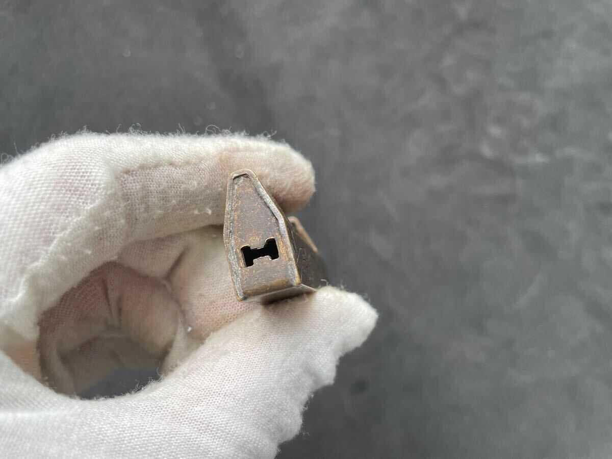 唐物 清 鎖 古銅  中国美術 クサリ 南京錠 時代物 中国美術 骨董品 台形 尾錠
