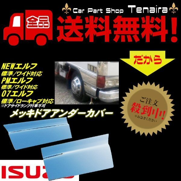 いすゞ 07 エルフ 超低 PM エルフ NEW エルフ メッキ ドア アンダー カバー 2トン ローキャブ 標準 ワイド ガーニッシュ 鏡面 送料無料/5