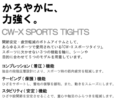 CW-X独自のテーピング原理で着地時の衝撃からひざを守る。