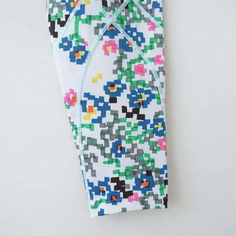mina perhonen×UNDER WEAR BY CW-Xのflower bed サポートタイツです。カラーはライトグレー・ネイビー・グリーン・グリーン系カーキ・ピンク・イエロー等で、カラフルなお花のプリント吸汗速乾性のよいストレッチ素材で仕立てられております。ウエストはゴム&ひも仕様で、スポーツ科学の「テーピング原理」をウェアに応用され、両脇から股関節を支え、ひざをサポートすることで、運動時の負担を軽減します。