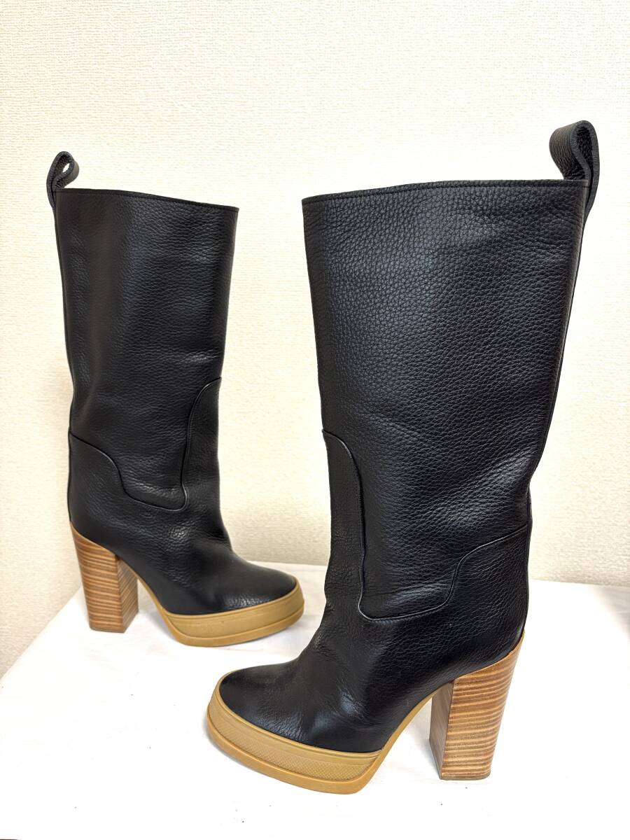 Chloe クロエ 1回着のみ ラバーソール ブラック シボ革 ロングブーツ サイズ39 送料込み