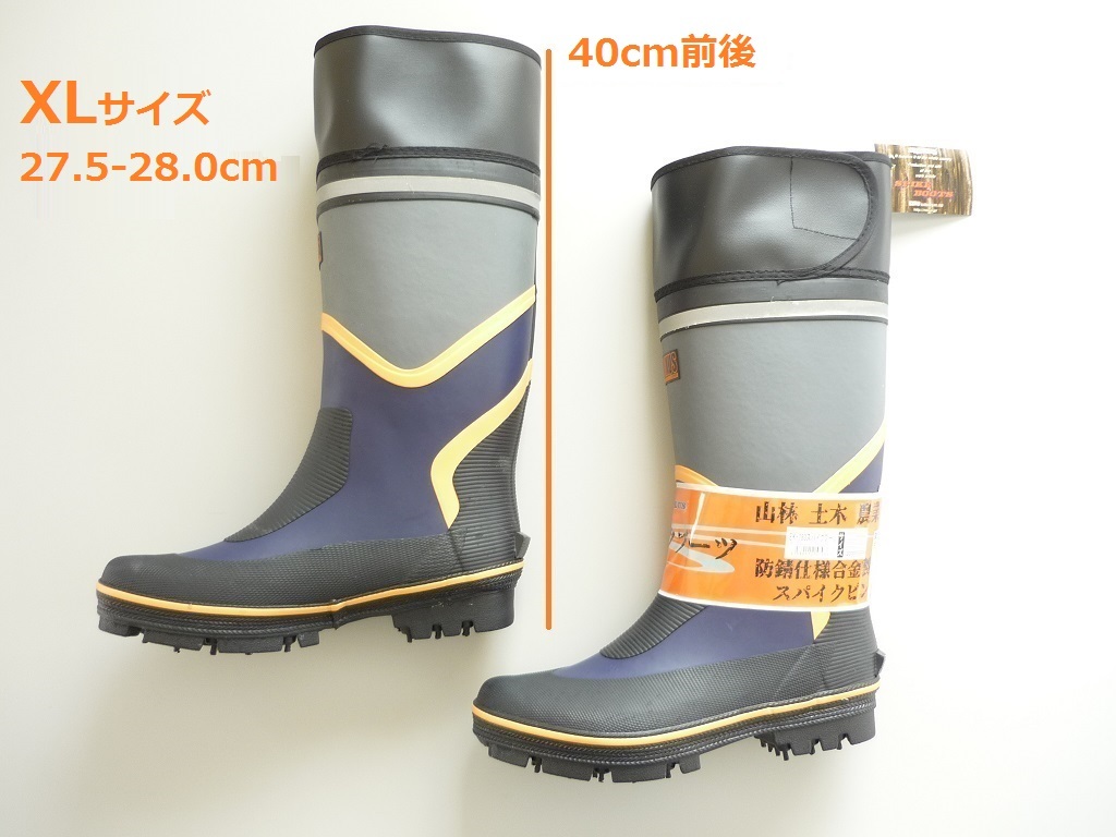 780/格安!スパイクブーツ 作業長靴 XLサイズ 27.5-28.0cm 天然ゴム ドライメッシュ裏地 防錆ダブルピン フード付 山林業 農作業 土木建設
