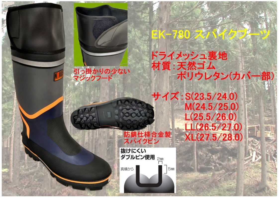 Product name: 780/格安!スパイクブーツ 作業長靴 XLサイズ 27.5-28.0cm 天然ゴム ドライメッシュ裏地 防錆ダブルピン フード付 山林業 農作業 土木建設