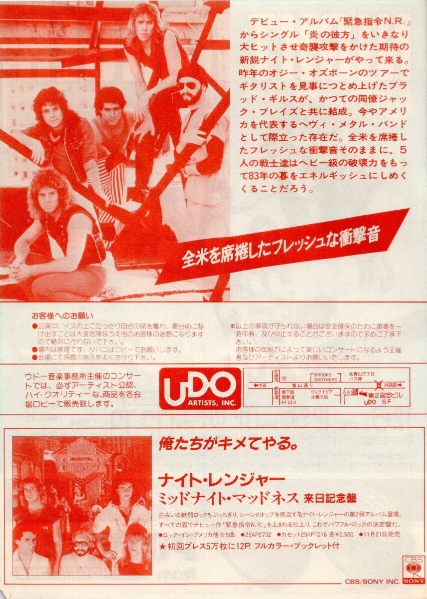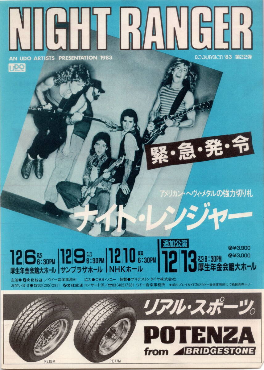 Product name: ナイト・レンジャー/1983年来日公演チラシ + チケット半券 + 特典 (検索)NIGHT RANGER