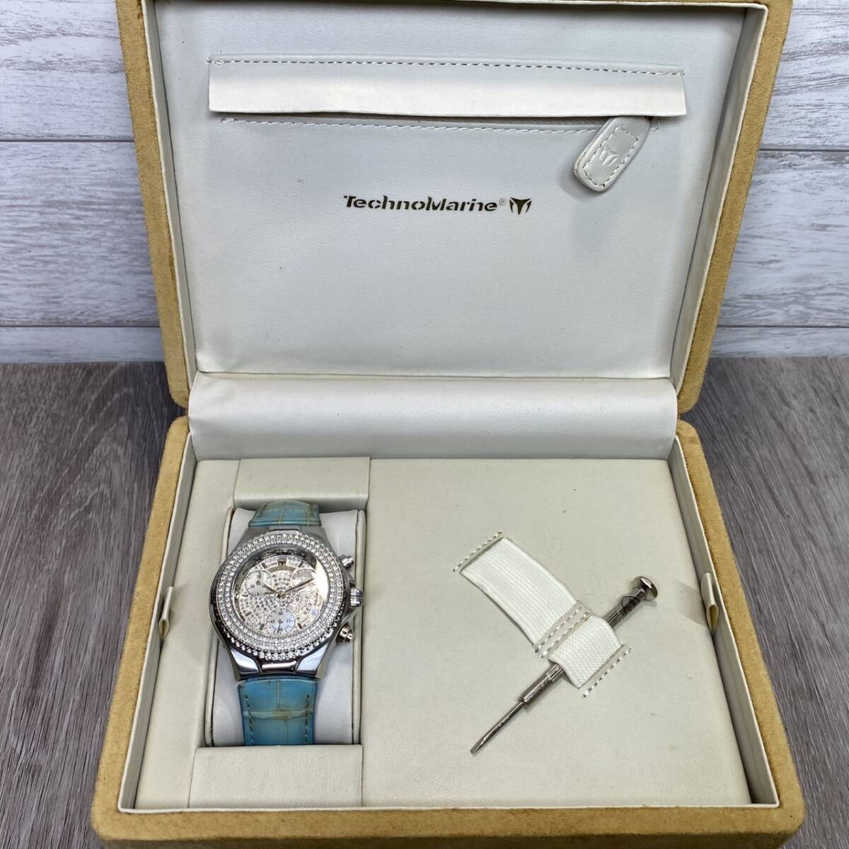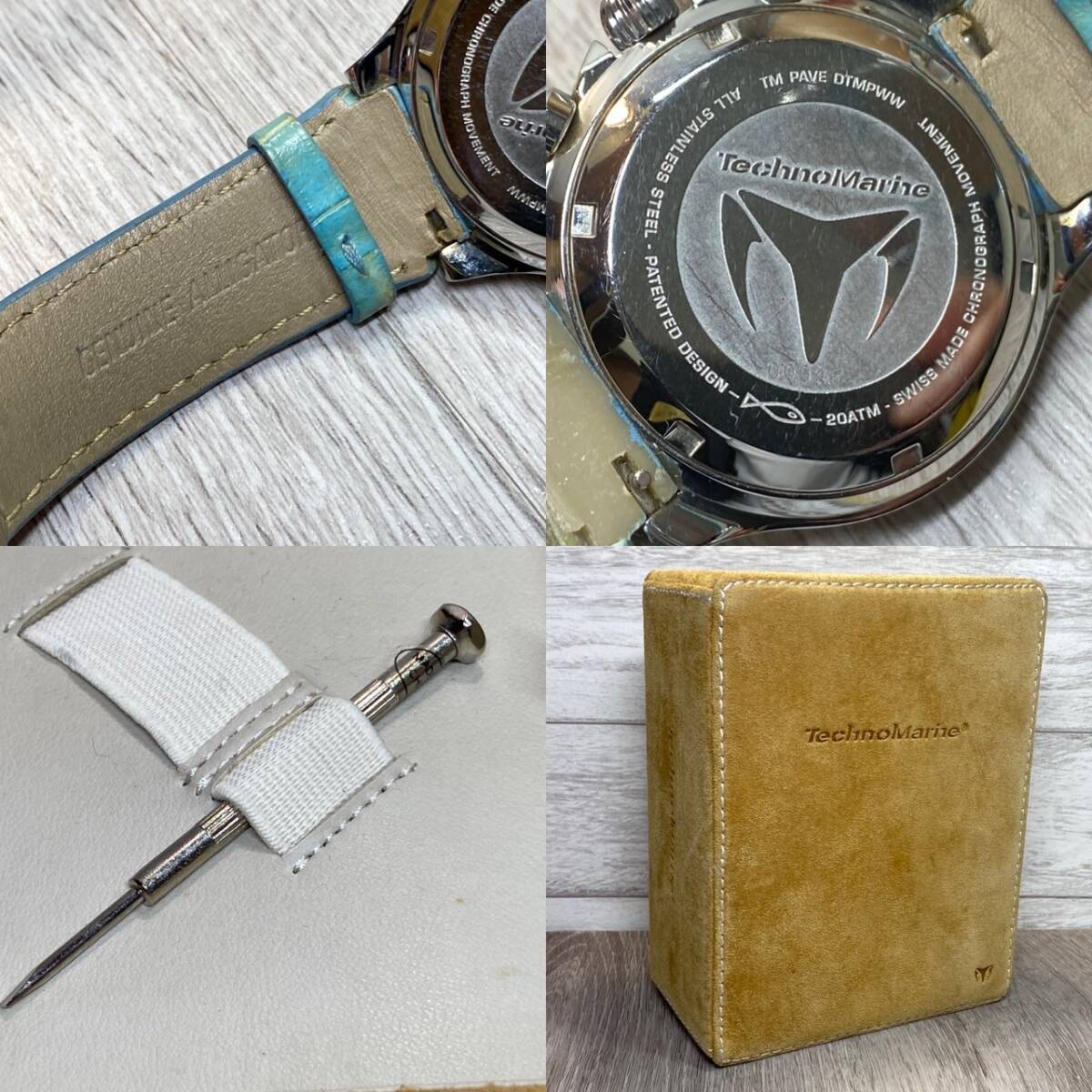 【YH-2594】 Techno Marine テクノマリーン 腕時計 純正ベルト付き Swiss made クロノグラフ 現状不動 ケース付き