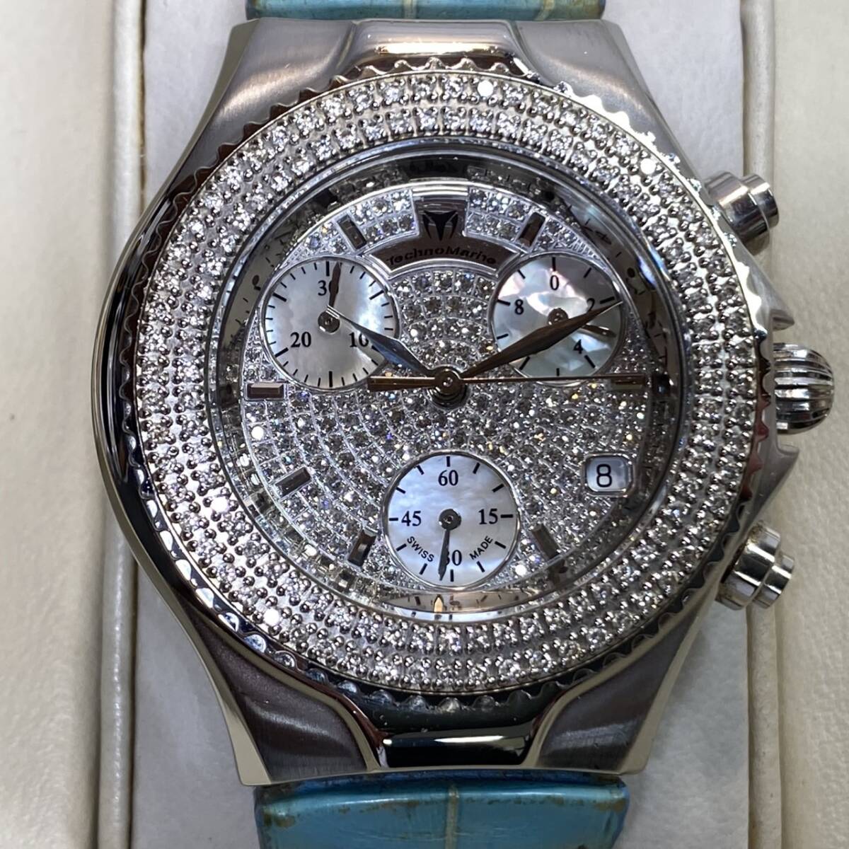 Product name: 【YH-2594】 Techno Marine テクノマリーン 腕時計 純正ベルト付き Swiss made クロノグラフ 現状不動 ケース付き