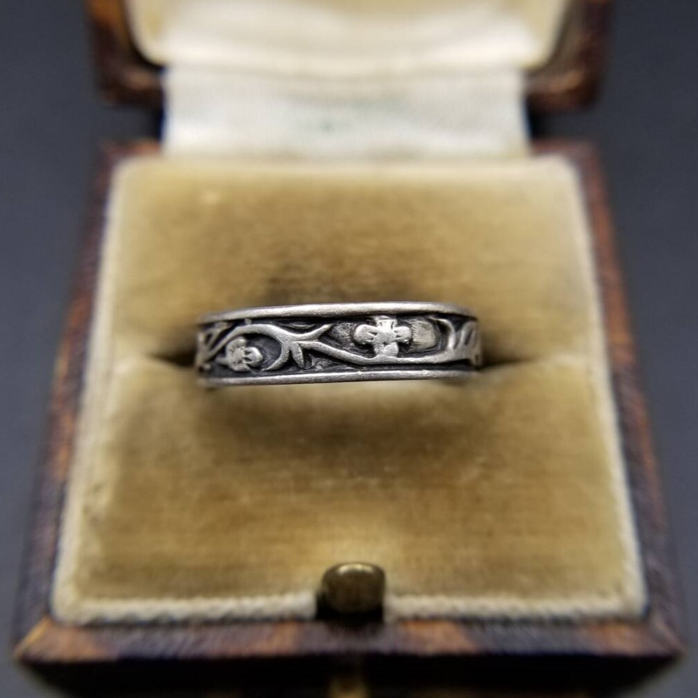 植物の蔓 椿モチーフ 925 シルバー ヴィンテージ カフ リング 銀 指輪 レトロ フローラル 小さいサイズ ピンキー Y23-G