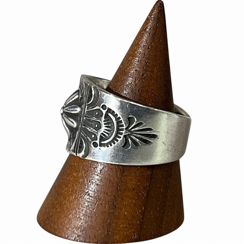 送無 美品 Navajo ナバホ族 ESS 刻印 Edison Sandy Smith 作 スタンプワーク スターリング シルバー リング インディアンジュエリー 約17号