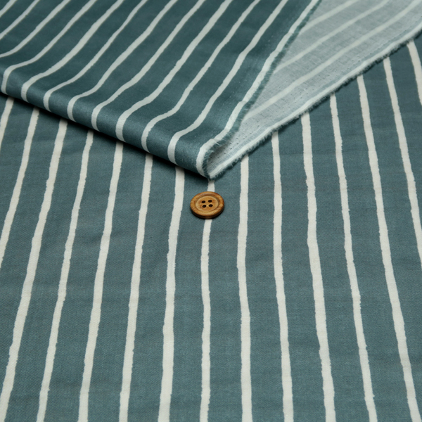 2m お買い得 綿40ダブルガーゼ生地 ストライプ ダックブルー