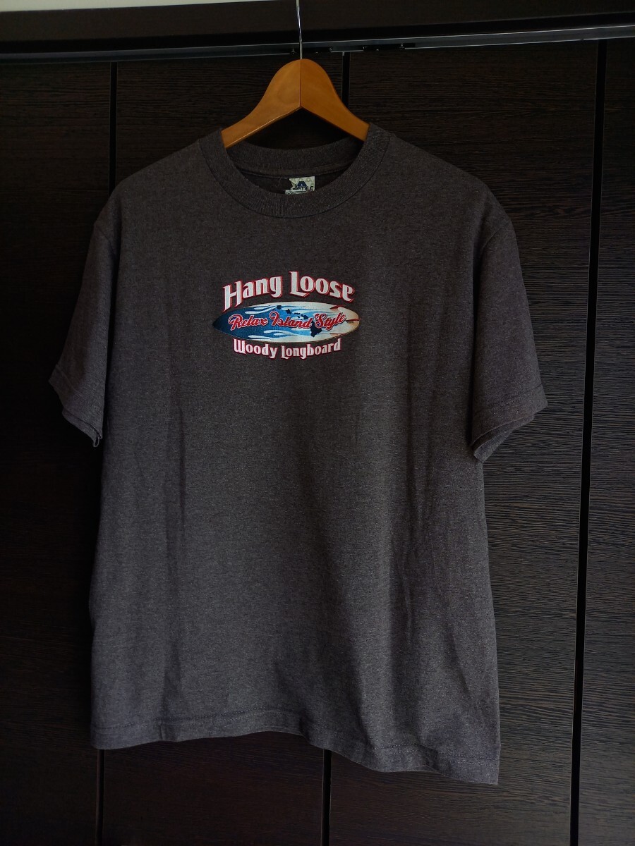 ビンテージ古着屋で購入した90s~00s HANG LOOSE ガール サーフボード Tシャツ サイズMです。肩幅約52身幅約56着丈約66袖丈約20センチです。状態は使用感も少なく全体的に良い状態だと思います。必ず当方の自己紹介欄を見てから質問、入札、落札してください。