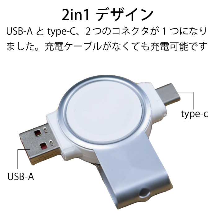 Apple Watch 充電器 2in1 アップルウォッチ コードレス ワイヤレス USB Type-C 全モデル FJ9005