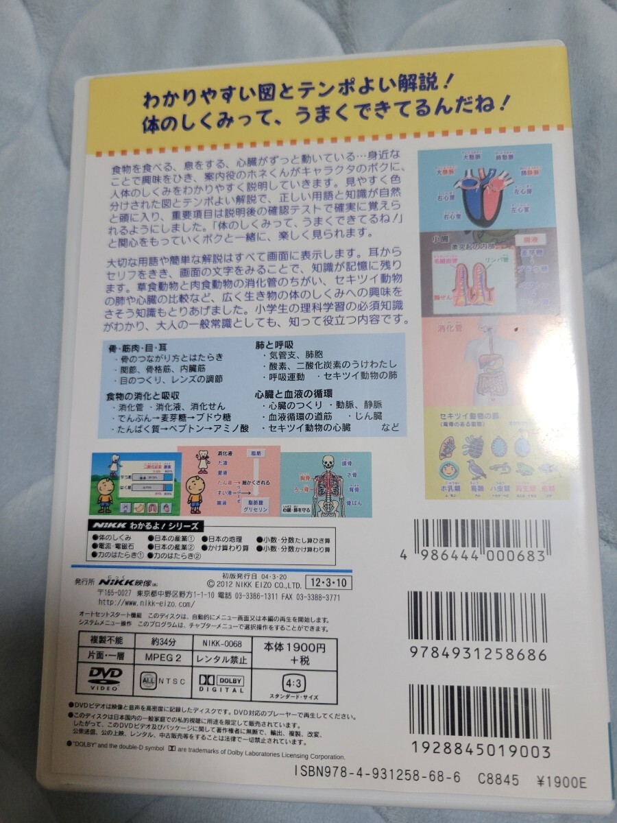 Product name: わかるよ! 体のしくみ 小学生の理科 DVD 骨 筋肉 消化 呼吸 心臓 血液の循環 腎臓 消化液 目 NiKK映像