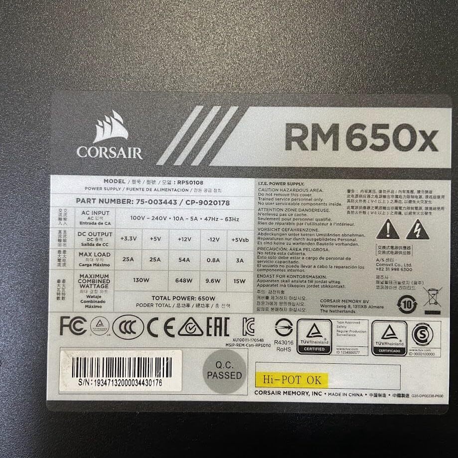 Product name: 【A】Corsair CP-9020178-JP PC電源ユニット RM650x -2018-650W 80PLUS GOLD 0608-B07DNCHSR6-5500-11780