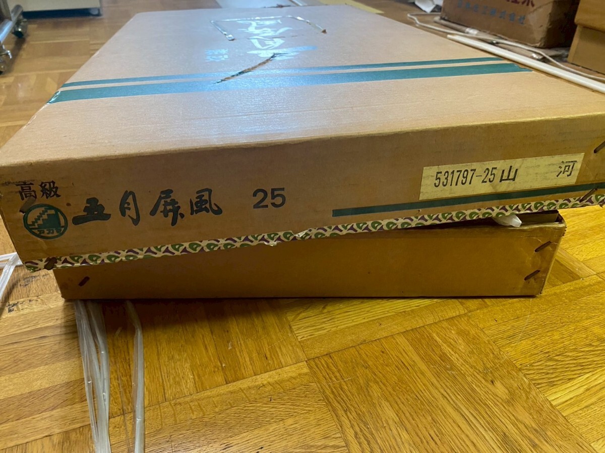 Product name: 屏風 五月人形 和風 飾り インテリア 山河 木製 25号 横 80cm縦 75cm幅 1.5cm 箱はボロボロです。