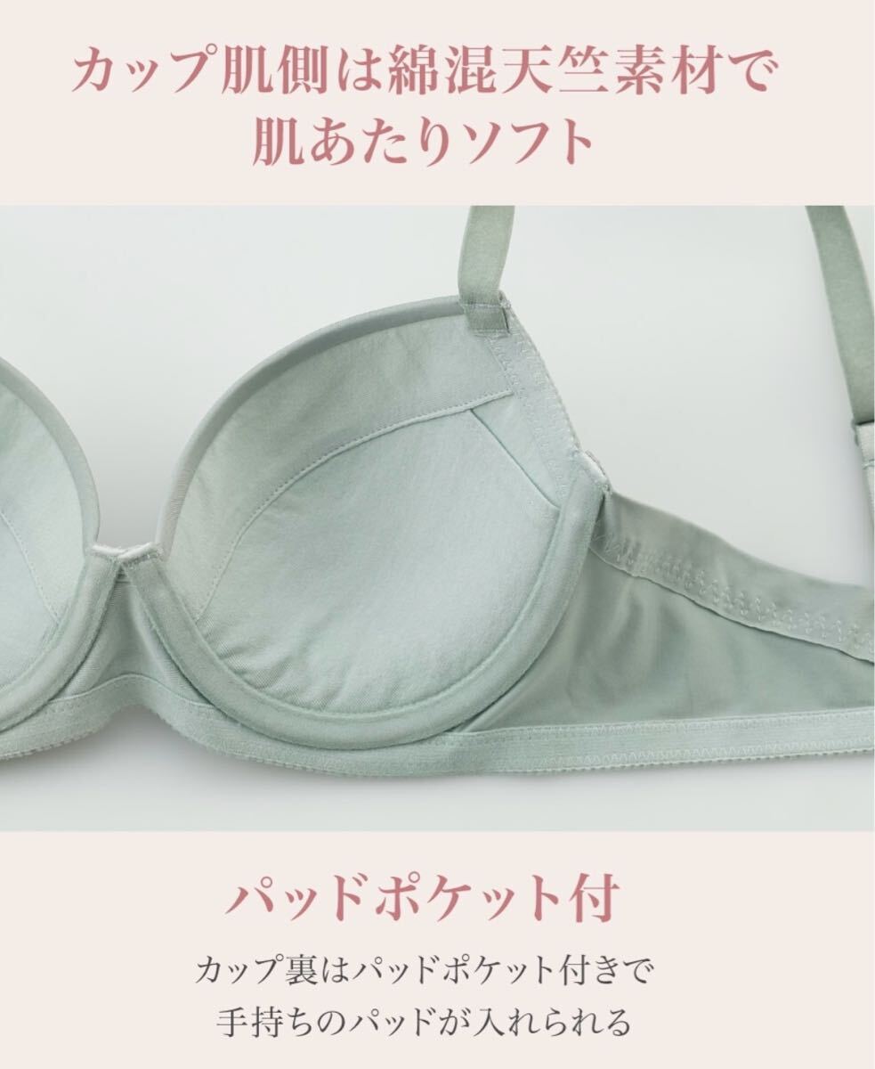 ・カップ肌側は綿混天竺素材でソフトな肌あたり