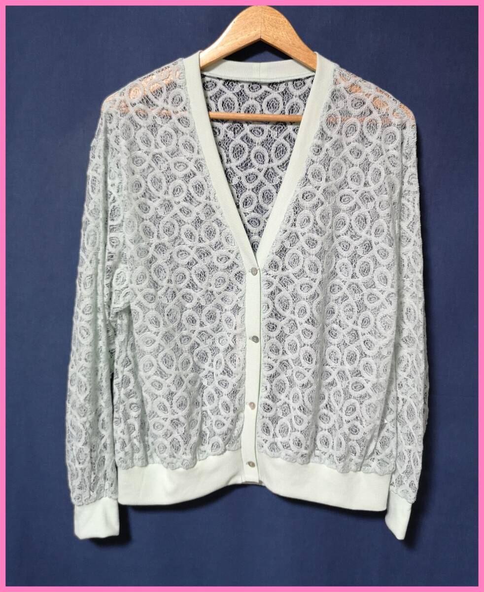 BLS‐340☆春夏秋☆サンプル品☆送料込み☆即決☆ナチュラル系☆総レース☆M~Lサイズ☆カーディガン☆ライトグリーン☆ゆったり