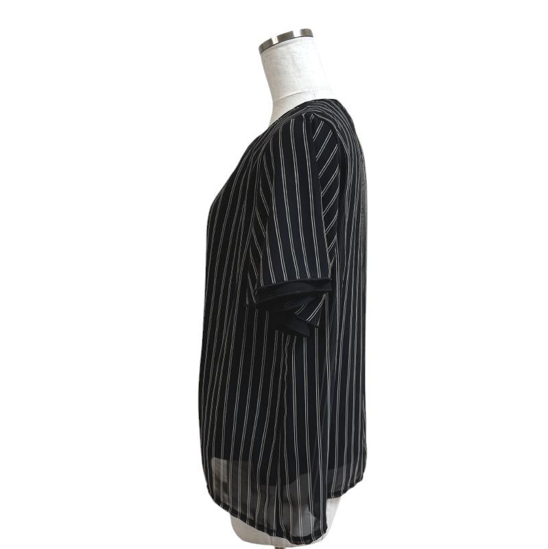Product name: ALPHA CUBIC アルファキュービック レディース ブラウス プルオーバーブラウス シフォン 半袖 黒 ストライプ LL