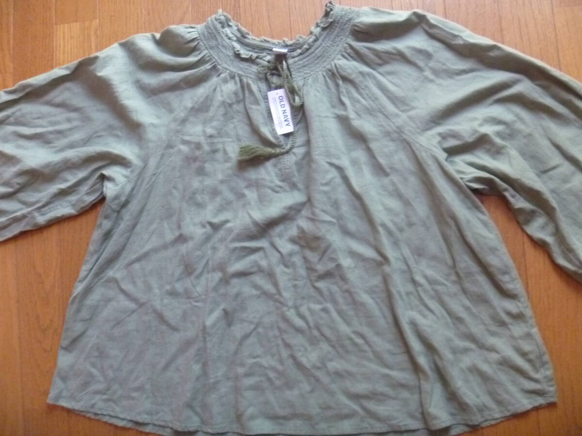 LADIES モスグリーンのOLD NAVYの長袖ブラウス LARGE 新品 931