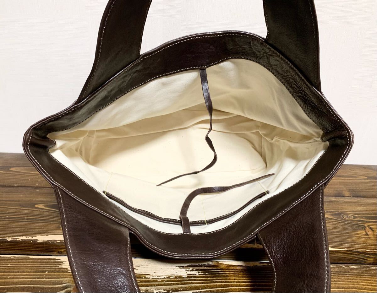 Product name: 未使用:オリジナル(ハンドメイド).レザー トート バッグ(焦茶/ショルダー 掛け可/タンニンなめし.上質.牛革/H21W44D15/genten dakota type)