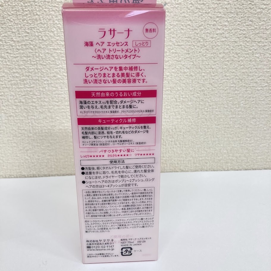 Product name: ヤマサキ La Sana ラサーナ 海藻 ヘアエッセンス しっとり ヘアトリートメント Mサイズ 75ml 洗い流さないタイプ