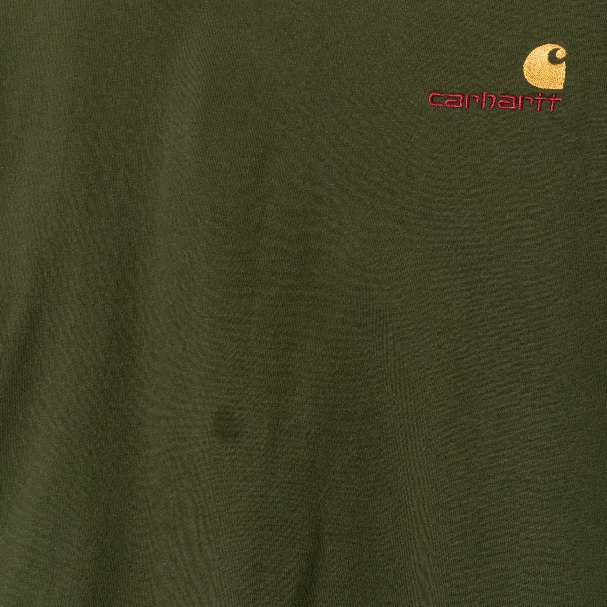 carhartt トップス カーハート ロングスリーブ アメリカンスクリプト Tシャツ グリーン ロゴ オーガニックコットン100% I029955 XL メンズ