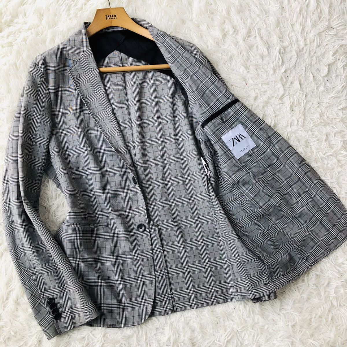 Product name: ZARA (ザラ)テーラードジャケット グレー XL相当 グレンチェック 背抜き センターベンド ポリ ストレッチ 大きいサイズ 189