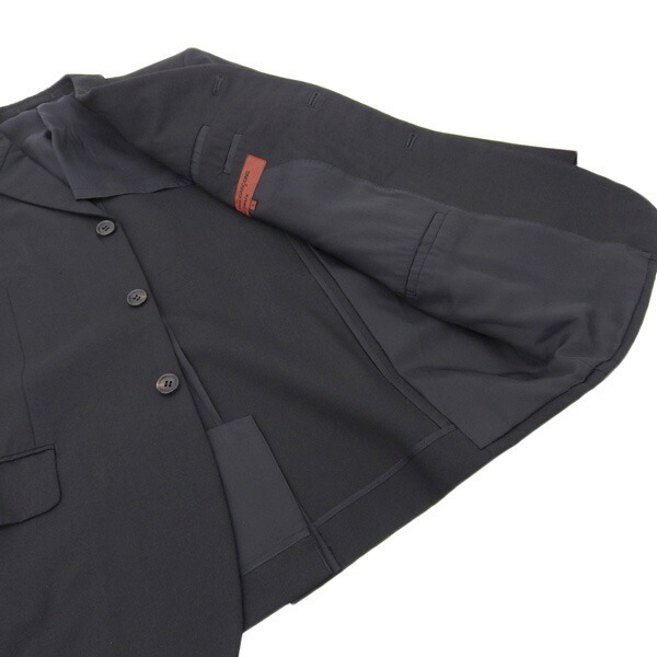 仕様 仕立てはジャケットがシングル 3釦、センターベント、背抜き、見せ開き、フラップポケット、ネーム刺繍 無