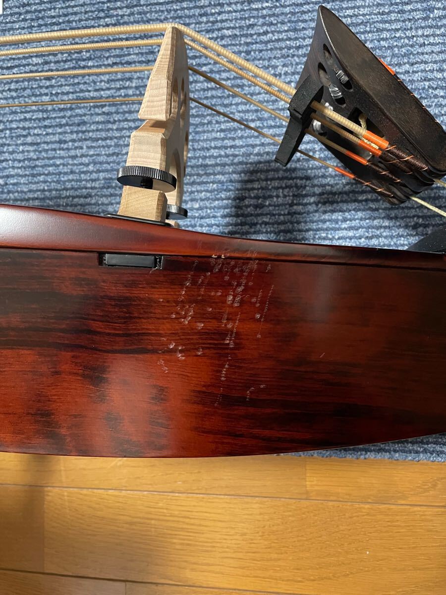 YAMAHAサイレントベースSLB200の限定生産モデル、SLB200LTDを出品いたします。生産本数限定のため、現在では中古市場でしか手に入らない希少な逸品です。 このSLB200LTDは、通常のSLB200とは一線を画すプレミアムな仕様が魅力です。ウッドベースに近いフィーリングを実現するため、指板には希少なエボニー(黒檀)材を、ネックには美しいカーリーメイプル材を採用。密度の高いエボニー材は、ソリッドな音の立ち上がりと優れた弾き心地を実現し、楽器の持つ雰囲気や格調が格段に違います。 詳細スペックは以下をご確認ください。 https://jp.yamaha.com/products/musical_instruments/strings/silent_series/slb200ltd/index.htm SLB200LTDは、単なるサイレントベースではなく、本格的なウッドベースのフィーリングとサウンドを求めるベーシストのために開発された「作品」と呼べる楽器です。そのルックスから醸し出される高級感は、所有する喜びをも与えてくれるでしょう。 また、某コントラバス修理・調整専門店にて調整済みのため、とても弾きやすくなっていると思います。 傷は下部に見て分かるものがございます。(画像10枚目) 弦はPREST(ナイロン弦)が張ってあると思われます(あまり詳しくないのですみません) 側板ユニットの幅を広くして、楽器をより支えやすくするための延長フレームをお付けします。(画像8枚目、取り付けた状態でケースに収納できます) ケースは純正のソフトケースをお付けします。 ※中古品ですので言及している傷以外にも細かい傷もございます。ご了承の上ご入札ください。 ※返品は出来かねますのでご注意ください。 ※都内(山手線内付近)、さいたま市付近であれば手渡しも可能です(できれば手渡しの方が安心です…)ので落札後にご相談ください。