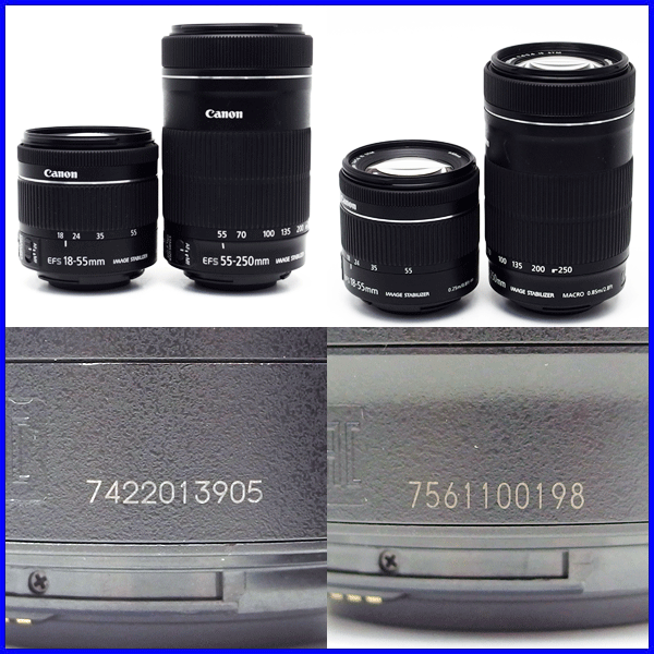 付属品 ボディ、ボディキャップ、EF-S18-55 IS STM、EF-S55-250 IS STM、各レンズキャップ・リアキャップ