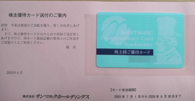 Product name: サンマルク 株主優待 株主様ご優待カード