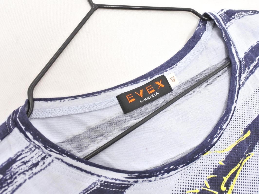 ネコポスOK EVEX by KRIZIA エヴェックスバイクリツィア ボーダー プリント カットソー size42/水色x紺 ■◇ ☆ fgc5 レディース