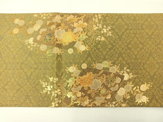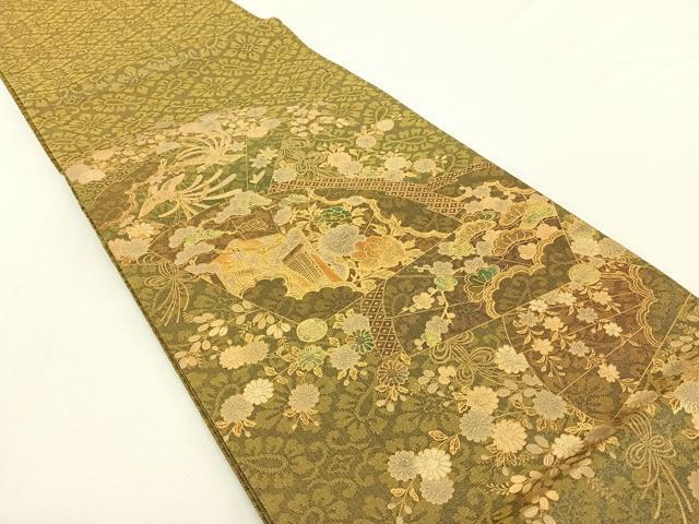 Product name: 平和屋着物◎西陣 太鼓柄袋帯 扇面御所車花鳥文 金銀彩 証紙付き 正絹 逸品 未使用 AAAO5515jh