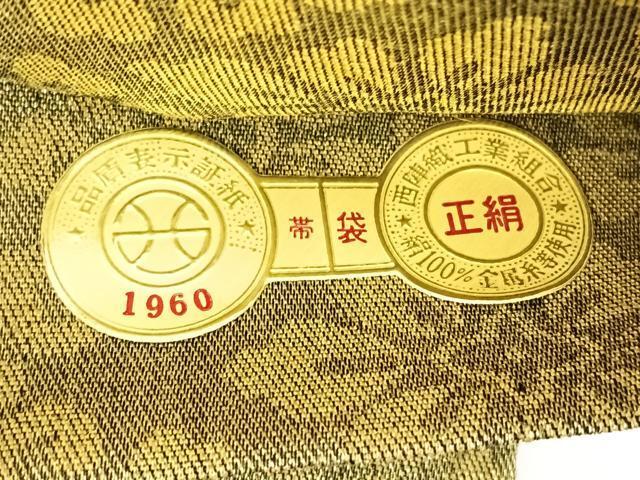 平和屋着物◎西陣 太鼓柄袋帯 扇面御所車花鳥文 金銀彩 証紙付き 正絹 逸品 未使用 AAAO5515jh