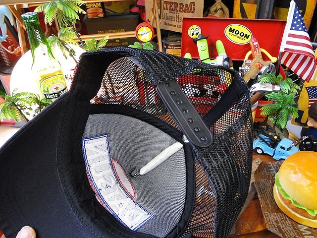 帽子は人気のトラッカーハットをベースに、後ろ側は通気のイイ、メッシュキャップタイプになっていて、正面にデッカク「ダットサン」って入ったドンズバなデザインになっています。これだけで堂々と主張しちゃえるところがカッコイイでしょ!