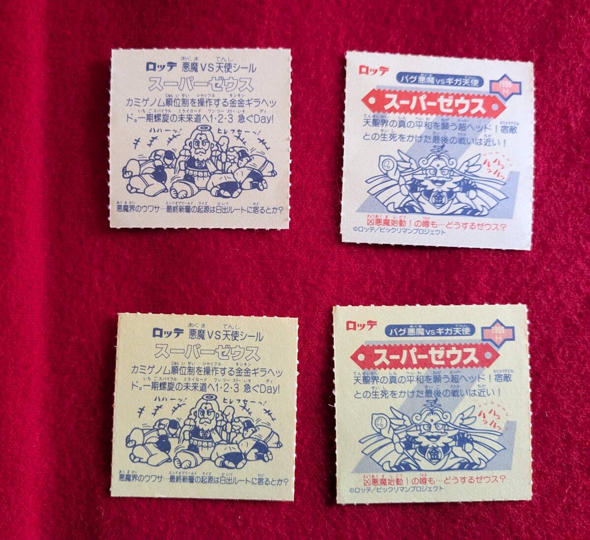 ビックリマンシール大百科特典のスーパーゼウスシール、初期大百科(金色2種)と、増補版2種もお付け致します。