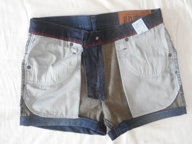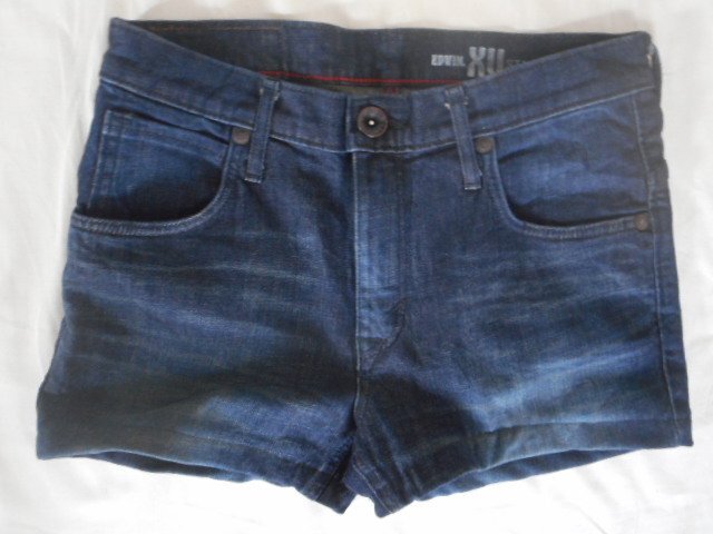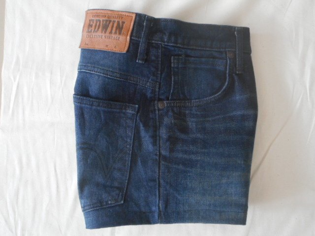 【全国送料無料】 中古、160-170cm EDWIN エドウィン、デニム半ズボン、日本製、股下6cm、 W31、濃い紺、ダークネイビー③