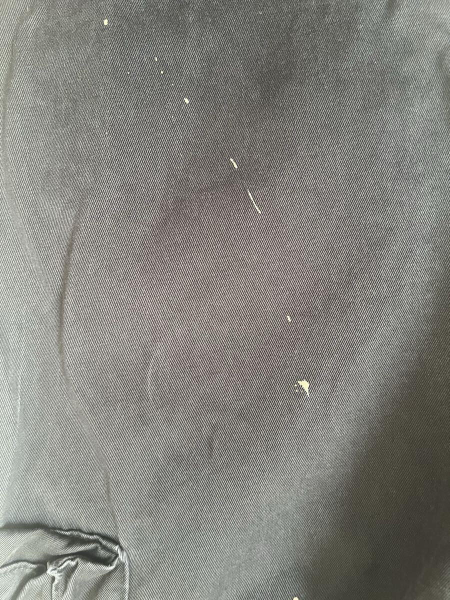 4枚目の写真にもあるように白のペイントが飛び散っているようなデザインです。当方が好意的に付けたものではございません。ご安心ください