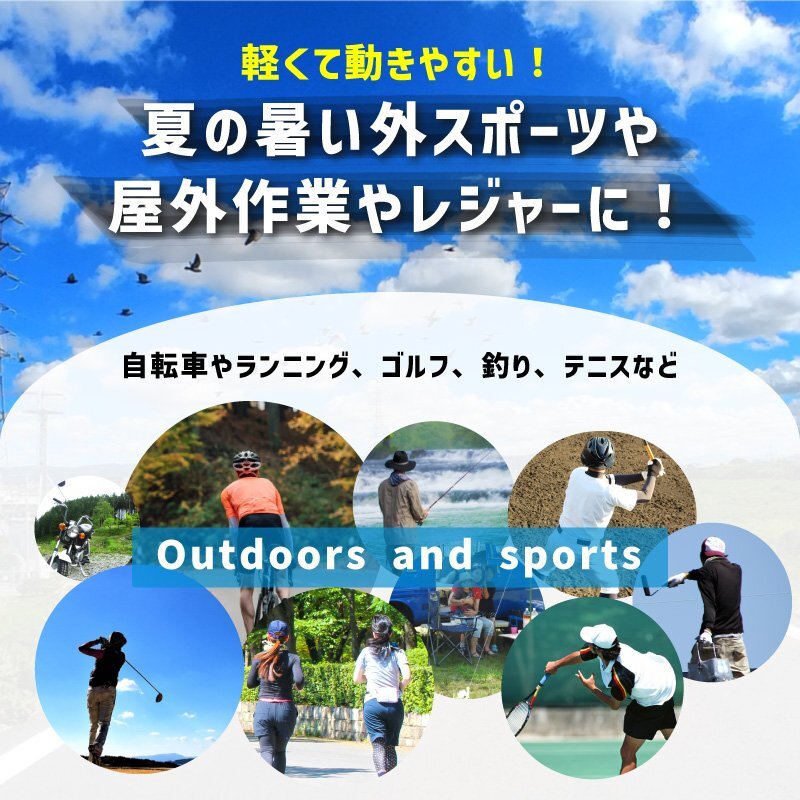 ロードバイクなどでのサイクルウェアとして、ランニングやウォーキング、ゴルフ、テニス、釣りやツーリングや