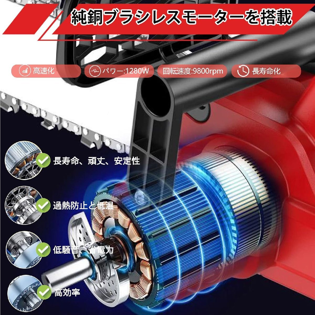 新品 チェーンソー12インチ ブラシレスモーター 電動ノコギリ バッテリー2個 給油可能 強力 枝切り 家庭用 女性